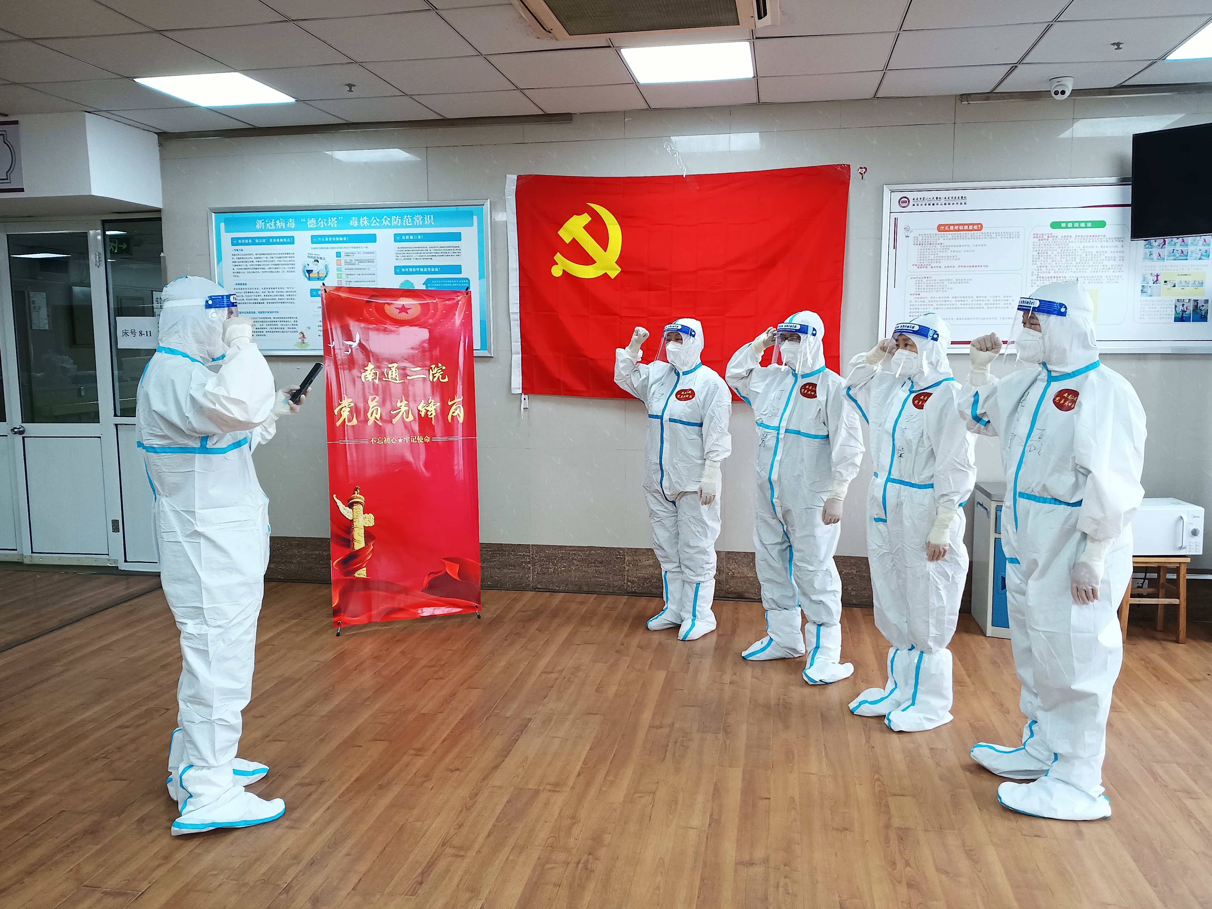 疫情防控在哪里,党组织就建到哪里,党员作用就发挥到哪里。作为南通市区指定的赋“黄码”患者及封控管控区域患者定点救治医院,4月16日,南通市第二人民医院正式成立了感染性疾病病区临时党支部。14名医护人员加入临时党支部,充分发挥了党组织战斗堡垒和党员先锋模范作用,冲锋在前,恪尽职守,用实际行动践行初心使命,牢牢筑起疫情防控“红色堡垒”。