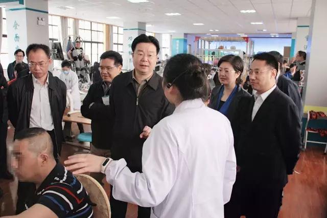 游副部长一行先后视察了二院康复医学中心的作业治疗区、运动治疗区、物理因子治疗区以及儿童康复治疗室和言语康复治疗室等,并观摩了南通地区目前唯一一台下肢康复机器人的治疗过程。