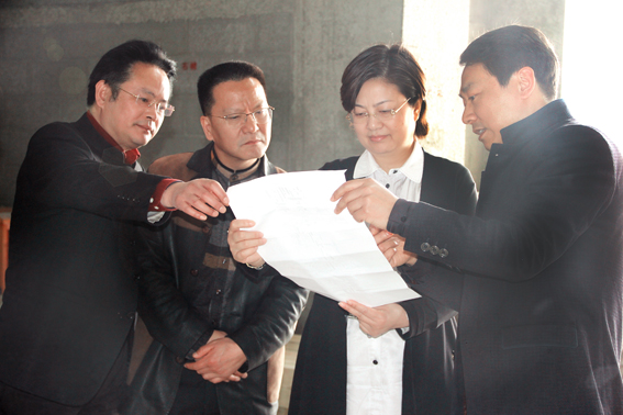 在二期项目门诊现场,任建兵书记拿出一幅文化浮雕背景设计图,向陈冬梅主任介绍其设计构想。他说,这张浮雕图反映了肉视频