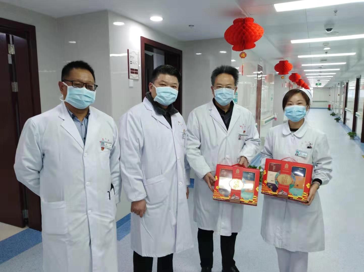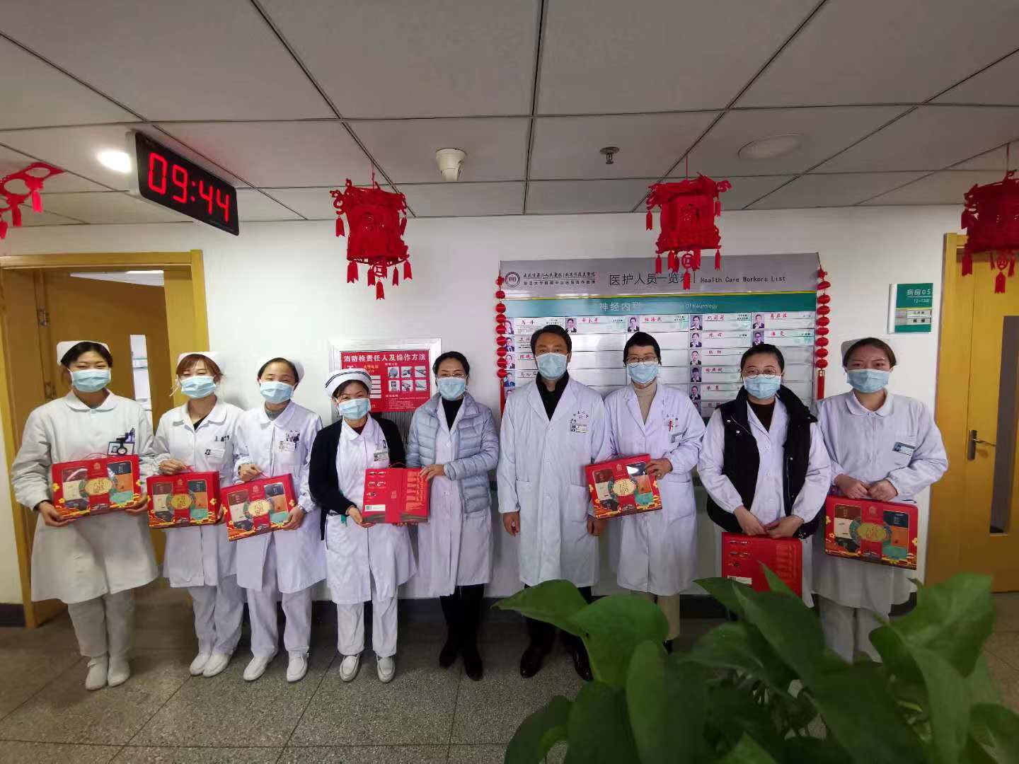 院领导每到一处,都与值班的医护人员亲切交谈,并送上节日的慰问品,感谢他们为患者的健康保驾护航,并祝福他们在新的一年里身体健康,阖家幸福!
