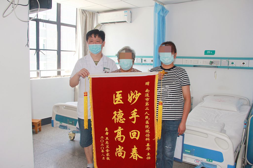 8月3日这天,顾女士带着母亲来找姜华副主任医师复诊,还特意制作了一面锦旗送给了姜华,表达感激之情。