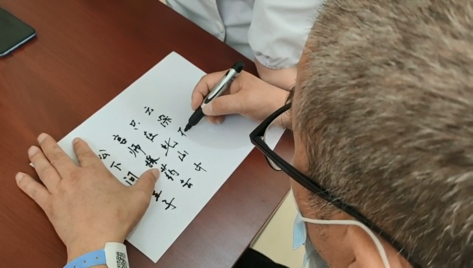 看到希望的刘先生积极配合康复治疗师的治疗,经过一段时间规范治疗后,他已经可以非常熟练地用筷子吃饭、提笔写字了,生活也能完全自理,刘先生高兴得逢人便说:“我马上就要康复出院啦,回去我就又可以继续我的书法爱好了,来二院做康复真是来对了地方!”